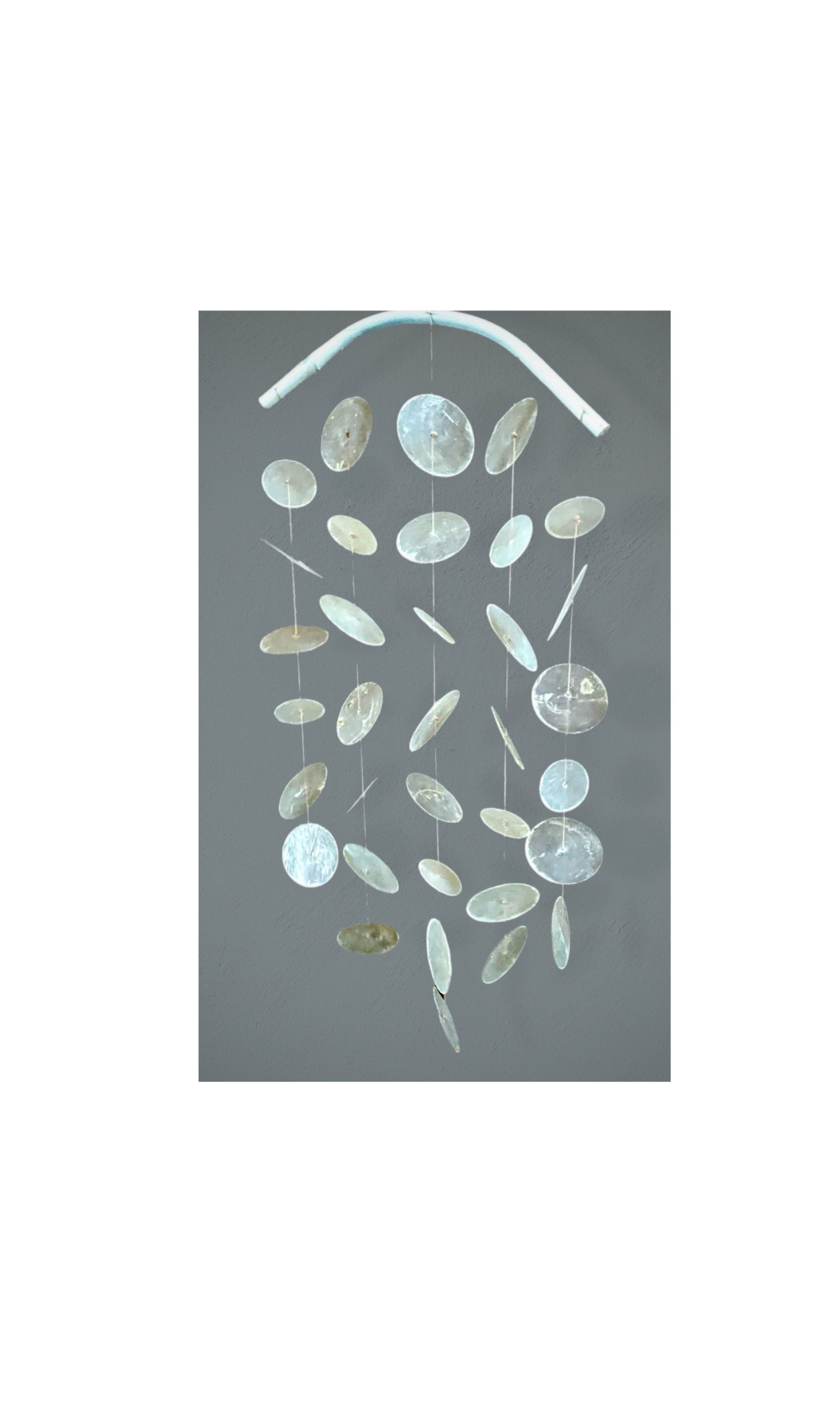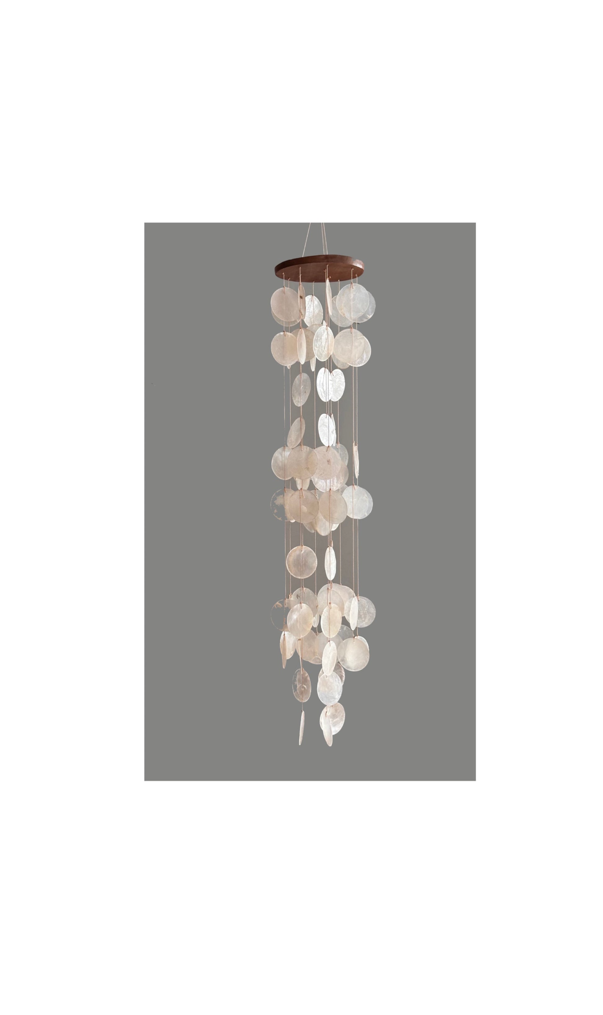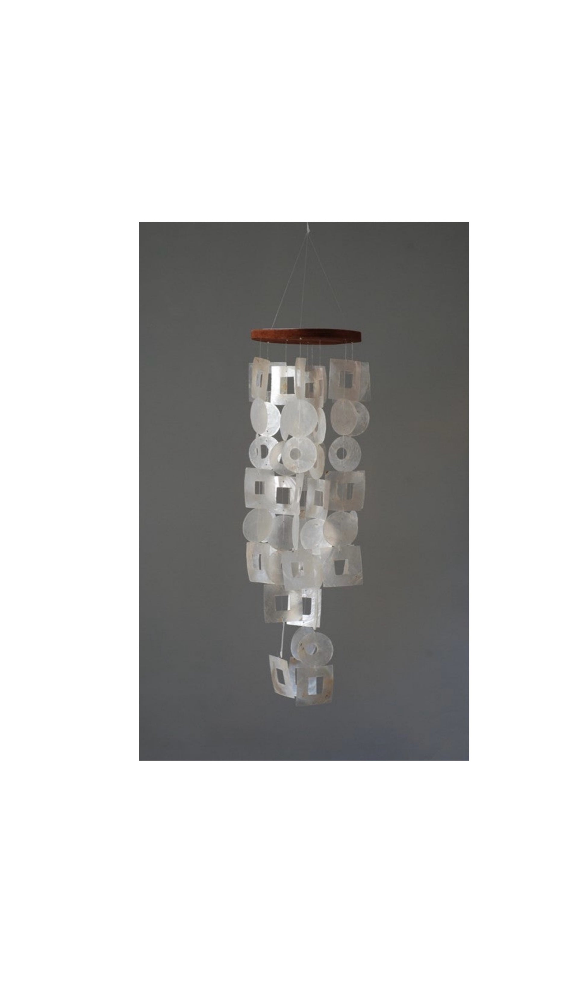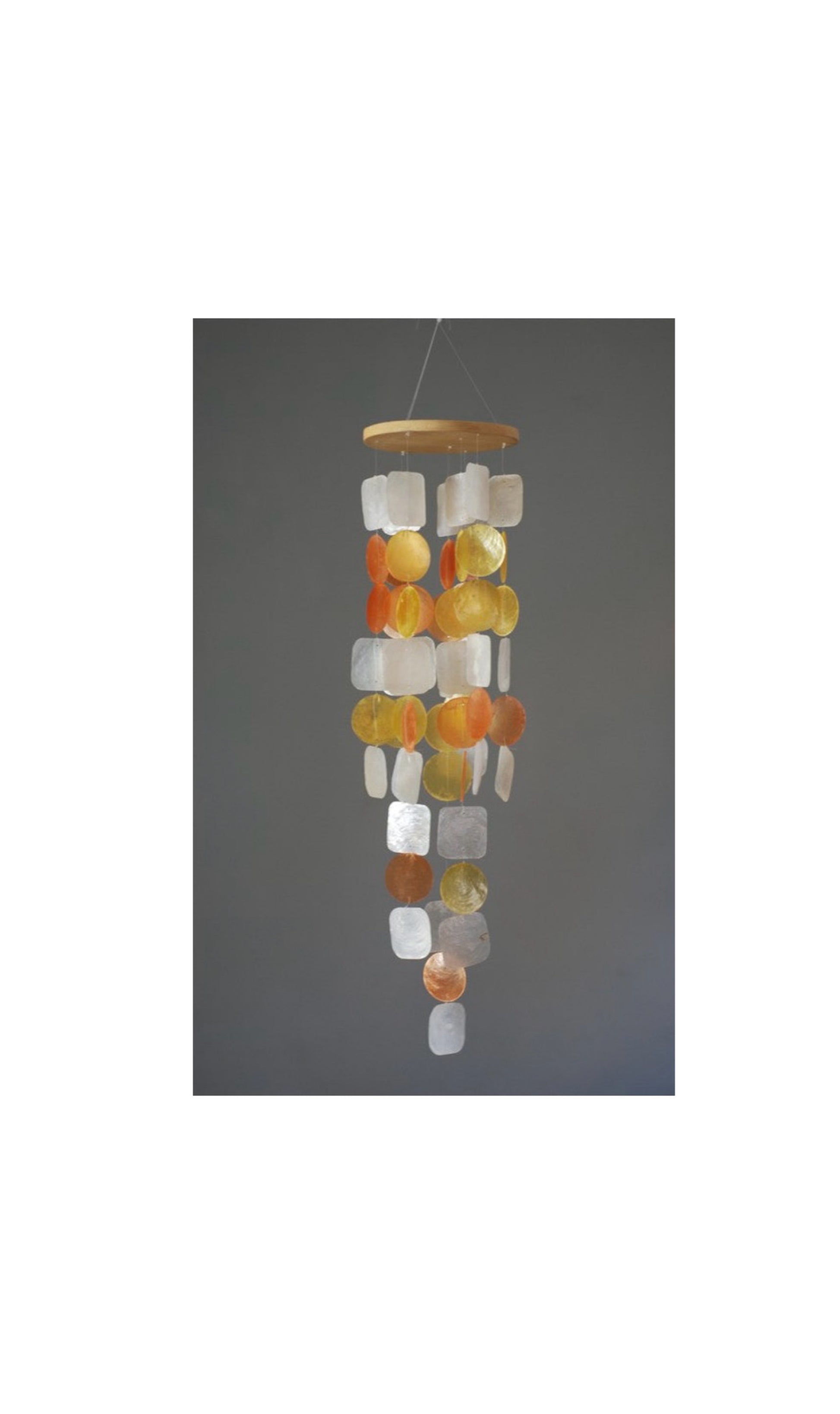 De schelpen chimes worden in Indonesia gemaakt van natuurlijke Capiz schelpen.
